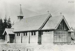 The first service was held Sunday March 24, 1907, when ten men and four women were present. Later that year on the first Sunday in June, Rev. David Dunlop (1907-1914), B.A. the newly appointed Vicar of Sapperton, took official charge of the Parish. The founders faced opposition to clearing the land and building a church. Burnaby was a very rural setting at this time and consisted of about 2000 citizens. The founders showed real determination, faith, and courage and in 1909 a small church was built and named after the first Christian Martyr, St. Alban. The first confirmation service and first christening both took place in 1909. The first rectory was built in 1911. In April 1910 the Rev. Dunlop was able to report, “We are glad to note that the regular attendance at our services has increased and we can report that our Church is entirely paid for and has no outstanding debts.” After Rev. Dunlop retired in 1914, The Rev. H. Fane Edge (1915-1917) came to serve at St. Alban’s. During this time the first Ladies Guild was formed and was to function independently from the Women’s Auxiliary. Many of Burnaby’s finest young men left to serve overseas during the Great War. The first Bazaar was held at St. Alban’s on November 15, 1915 and was put on by the Ladies Guild and $120 was raised to go towards the Rectory building fund. Another popular activity was the garden socials that were held at the home of F.J. Hart near Deer Lake.